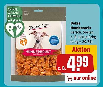 Sehen Sie sich das Dokas Hundesnacks Angebot bei REWE Center an! Dieses fantastische Angebot ist jetzt im neuesten REWE Center Prospekt verfügbar. Nutzen Sie diese Chance und sparen Sie viel bei Ihrem Einkauf.