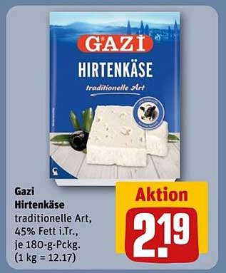 Sehen Sie sich jetzt das Gazi Hirtenkäse traditionelle Art, 45% Fett i.Tr., je 180-g-Pckg. Angebot im REWE Center Prospekt an. Dieses Angebot ist gültig von 27.10.2025 bis 02.11.2025.