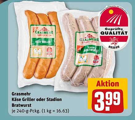 Sehen Sie sich jetzt das Grasmehr Käse Griller oder Stadion Bratwurst Angebot im REWE Center Prospekt an. Dieses Angebot ist gültig von 30.06.2025 bis 05.07.2025.
