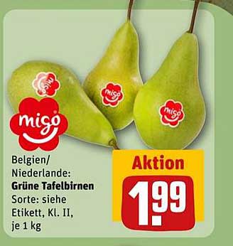 Sehen Sie sich das Grüne Tafelbirnen Angebot bei REWE Center an! Dieses fantastische Angebot ist jetzt im neuesten REWE Center Prospekt verfügbar. Nutzen Sie diese Chance und sparen Sie viel bei Ihrem Einkauf.