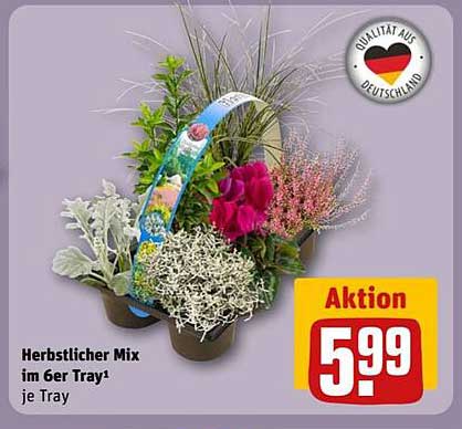 Sehen Sie sich jetzt das Herbstlicher Mix im 6er Tray Angebot im REWE Center Prospekt an. Dieses Angebot ist gültig von 29.09.2025 bis 05.10.2025.