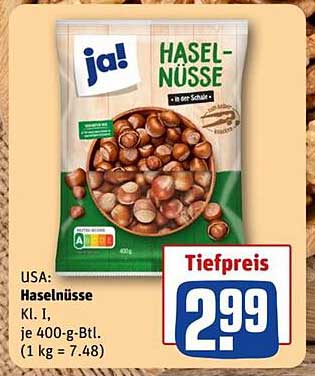 Sehen Sie sich jetzt das ja! Haselnüsse Kl. I, je 400-g-Btl. Angebot im REWE Center Prospekt an. Dieses Angebot ist gültig von 27.10.2025 bis 02.11.2025.