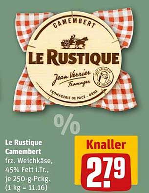 Aktuell erhalten Sie den Le Rustique Camembert zum sensationellen Preis von 2,79 €. Im Vergleich zum Normalpreis bedeutet dies eine erhebliche Ersparnis, die dieses Angebot besonders attraktiv macht. Der übliche Preis liegt oft höher, sodass Sie hier ein echtes Schnäppchen schlagen können!