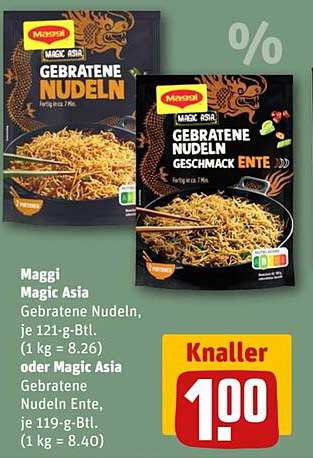 Sehen Sie sich jetzt das Maggi Magic Asia Gebratene Nudeln Angebot im REWE Center Prospekt an. Dieses Angebot ist gültig von 24.03.2025 bis 30.03.2025.