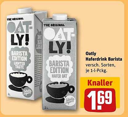 Entdecken Sie das großartige Oatly Haferdrink Barista Angebot im neuesten REWE Center Prospekt. Neben diesem Angebot finden Sie noch viele weitere attraktive Rabatte. Sie können das Oatly Haferdrink Barista einfach online über die REWE Center Website bestellen oder in einem Geschäft in Ihrer Nähe kaufen.