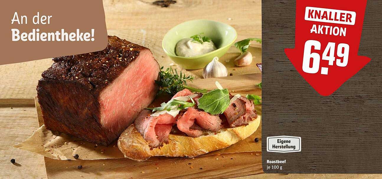Sehen Sie sich jetzt das Roastbeef an der Bedientheke - Aktionspreis! Angebot im REWE Center Prospekt an. Dieses Angebot ist gültig von 13.10.2025 bis 19.10.2025.