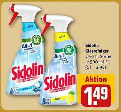 Sehen Sie sich jetzt das Sidolin Glasreiniger 500 ml – Streifenfreier Glanz für dein Zuhause Angebot im REWE Center Prospekt an. Dieses Angebot ist gültig von 06.10.2025 bis 12.10.2025.