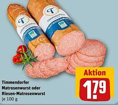 Sehen Sie sich das Timmendorfer Matrosenwurst Oder Riesen-Matrosenwurst Angebot bei REWE Center an! Dieses fantastische Angebot ist jetzt im neuesten REWE Center Prospekt verfügbar. Nutzen Sie diese Chance und sparen Sie viel bei Ihrem Einkauf.
