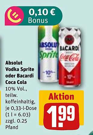 Sehen Sie sich jetzt das Absolut Vodka Sprite oder Bacardi Coca Cola - 0,33-l-Dose Angebot im REWE Kaufpark Prospekt an. Dieses Angebot ist gültig von 15.09.2025 bis 20.09.2025.