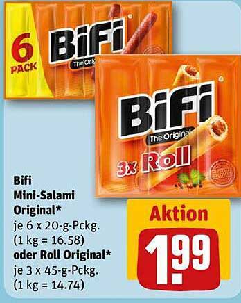 Sehen Sie sich jetzt das Bifi Mini-Salami Original* Angebot im REWE Kaufpark Prospekt an. Dieses Angebot ist gültig von 23.09.2024 bis 28.09.2024.