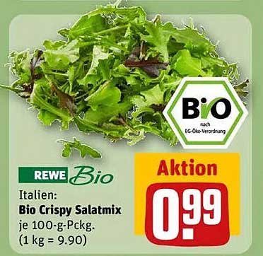 Der Bio Crispy Salatmix aus Italien ist die perfekte Wahl für alle, die frische, knackige Salate lieben. Mit dieser Aktion bei REWE sparen Sie nicht nur Geld, sondern genießen auch ein hochwertiges Produkt, das aus kontrolliert biologischem Anbau stammt. Machen Sie Ihre Mahlzeiten bunter und gesünder, indem Sie diesen köstlichen Salatmix in Ihre Ernährung integrieren.