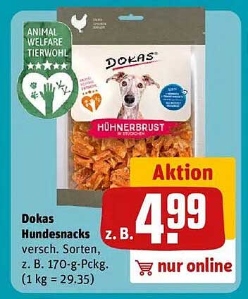 Sehen Sie sich jetzt das Dokas Hundenacks Angebot im REWE Kaufpark Prospekt an. Dieses Angebot ist gültig von 10.02.2025 bis 16.02.2025.