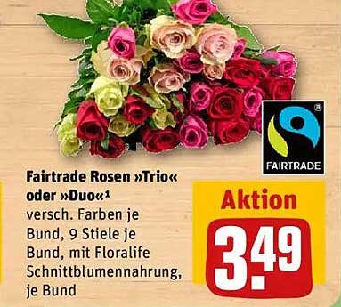 Die Fairtrade Rosen im »Trio« oder »Duo« sind nicht nur ein wahrer Blickfang, sondern auch ein tolles Angebot für Blumenliebhaber. Diese bunten Rosen bringen Farbe in jeden Raum und sind ideal für verschiedene Anlässe. Ob als Geschenk oder für die eigene Wohnung, diese Blumen sorgen für gute Laune.