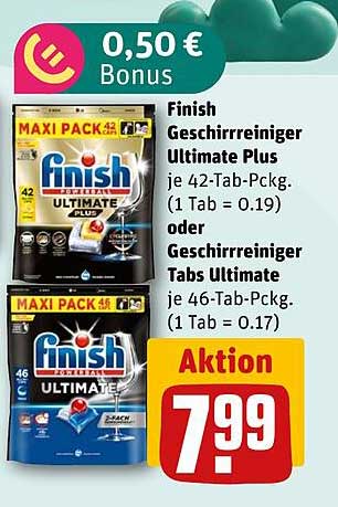 Sehen Sie sich jetzt das Finish Geschirrreiniger Ultimate Plus und Tabs Ultimate im Angebot Angebot im REWE Kaufpark Prospekt an. Dieses Angebot ist gültig von 22.09.2025 bis 27.09.2025.