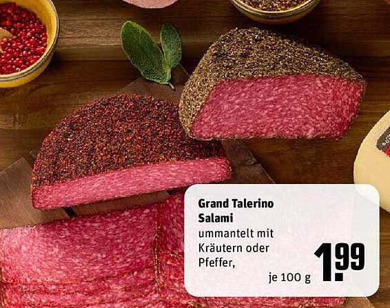 Sehen Sie sich das Grand Talerino Salami Angebot bei REWE Kaufpark an! Dieses fantastische Angebot ist jetzt im neuesten REWE Kaufpark Prospekt verfügbar. Nutzen Sie diese Chance und sparen Sie viel bei Ihrem Einkauf.