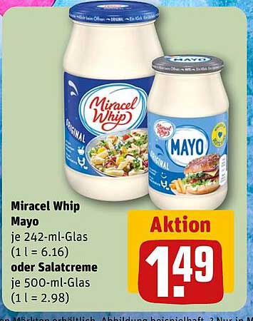 Sehen Sie sich das Miracel Whip Mayo Angebot bei REWE Kaufpark an! Dieses fantastische Angebot ist jetzt im neuesten REWE Kaufpark Prospekt verfügbar. Nutzen Sie diese Chance und sparen Sie viel bei Ihrem Einkauf.