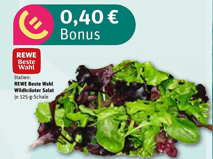 Sehen Sie sich jetzt das REWE Beste Wahl Wildkräuter Salat je 125-g-Schale Angebot im REWE Kaufpark Prospekt an. Dieses Angebot ist gültig von 24.03.2025 bis 29.03.2025.
