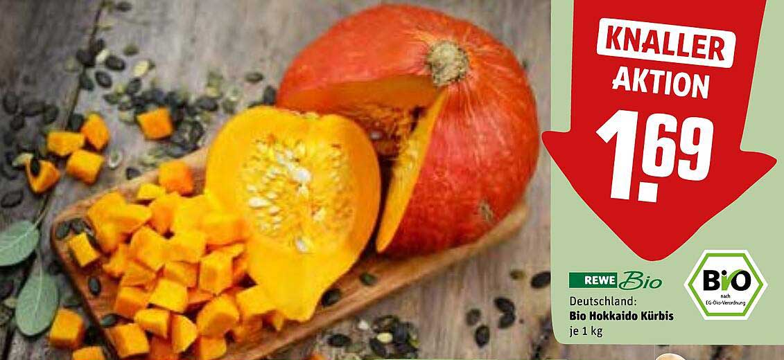 Sehen Sie sich das Bio Hokkaido Kürbis Angebot bei REWE an! Dieses fantastische Angebot ist jetzt im neuesten REWE Prospekt verfügbar. Nutzen Sie diese Chance und sparen Sie viel bei Ihrem Einkauf.