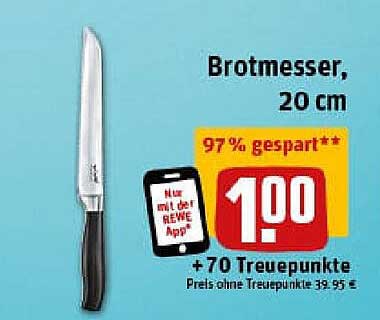 Sehen Sie sich jetzt das Brotmesser, 20 cm - 97% gespart! Angebot im REWE Prospekt an. Dieses Angebot ist gültig von 12.10.2025 bis 19.10.2025.