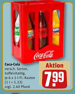 Sehen Sie sich das Coca-Cola Angebot bei REWE an! Dieses fantastische Angebot ist jetzt im neuesten REWE Prospekt verfügbar. Nutzen Sie diese Chance und sparen Sie viel bei Ihrem Einkauf.