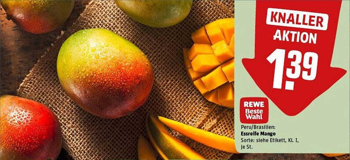Sehen Sie sich das Essreife Mango Angebot bei REWE an! Dieses fantastische Angebot ist jetzt im neuesten REWE Prospekt verfügbar. Nutzen Sie diese Chance und sparen Sie viel bei Ihrem Einkauf.