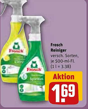 Entdecken Sie das großartige Frosch Reiniger Angebot im neuesten REWE Prospekt. Neben diesem Angebot finden Sie noch viele weitere attraktive Rabatte. Sie können das Frosch Reiniger einfach online über die REWE Website bestellen oder in einem Geschäft in Ihrer Nähe kaufen.