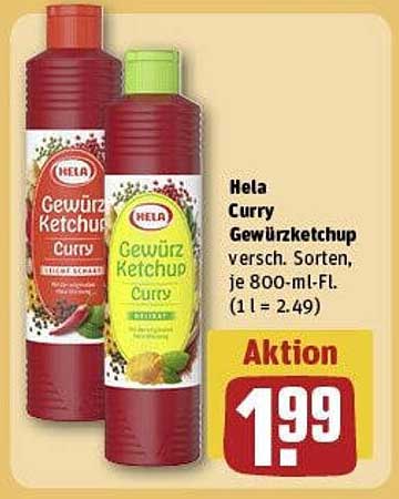 Entdecken Sie das großartige Hela Curry Gewürzketchup Angebot im neuesten REWE Prospekt. Neben diesem Angebot finden Sie noch viele weitere attraktive Rabatte. Sie können das Hela Curry Gewürzketchup einfach online über die REWE Website bestellen oder in einem Geschäft in Ihrer Nähe kaufen.