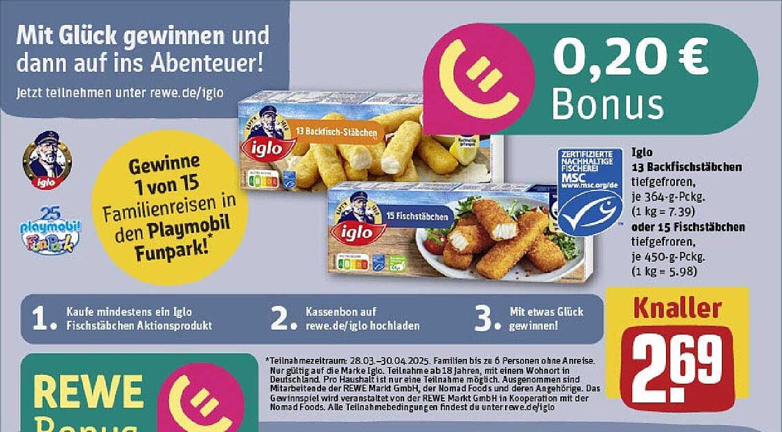 Normalerweise liegt der Preis der Iglo Fischstäbchen bei etwa 3,49 €, was bedeutet, dass Sie bei diesem Angebot mehr als 20% sparen können! Ein perfektes Beispiel dafür, wie Sie genussvoll sparen können, ohne auf Qualität zu verzichten. Zudem erhalten Sie beim Kauf der Fischstäbchen die Chance, an einem tollen Gewinnspiel teilzunehmen, wo Sie eine von 15 Familienreisen in den Playmobil Funpark gewinnen können!