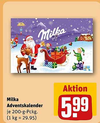 Sehen Sie sich das Milka Adventskalender Angebot bei REWE an! Dieses fantastische Angebot ist jetzt im neuesten REWE Prospekt verfügbar. Nutzen Sie diese Chance und sparen Sie viel bei Ihrem Einkauf.