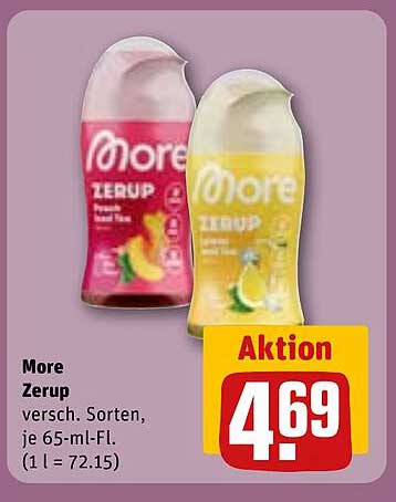 Sehen Sie sich jetzt das More Zerup - Verschiedene Sorten, je 65-ml-Fl. Angebot im REWE Prospekt an. Dieses Angebot ist gültig von 28.04.2025 bis 04.05.2025.