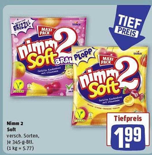 Entdecken Sie das großartige Nimm 2 Soft Angebot im neuesten REWE Prospekt. Neben diesem Angebot finden Sie noch viele weitere attraktive Rabatte. Sie können das Nimm 2 Soft einfach online über die REWE Website bestellen oder in einem Geschäft in Ihrer Nähe kaufen.
