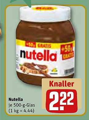 Sehen Sie sich das Nutella Angebot bei REWE an! Dieses fantastische Angebot ist jetzt im neuesten REWE Prospekt verfügbar. Nutzen Sie diese Chance und sparen Sie viel bei Ihrem Einkauf.