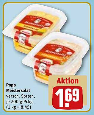 Sehen Sie sich das Popp Meistersalat Angebot bei REWE an! Dieses fantastische Angebot ist jetzt im neuesten REWE Prospekt verfügbar. Nutzen Sie diese Chance und sparen Sie viel bei Ihrem Einkauf.