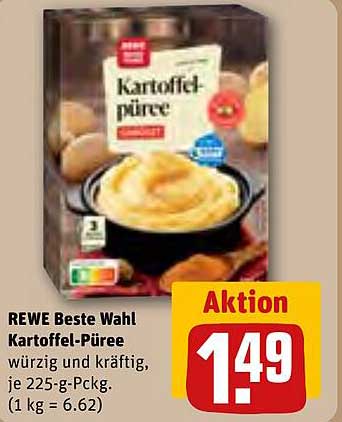 Sehen Sie sich das Rewe Beste Wahl Kartoffel-Püree Angebot bei REWE an! Dieses fantastische Angebot ist jetzt im neuesten REWE Prospekt verfügbar. Nutzen Sie diese Chance und sparen Sie viel bei Ihrem Einkauf.