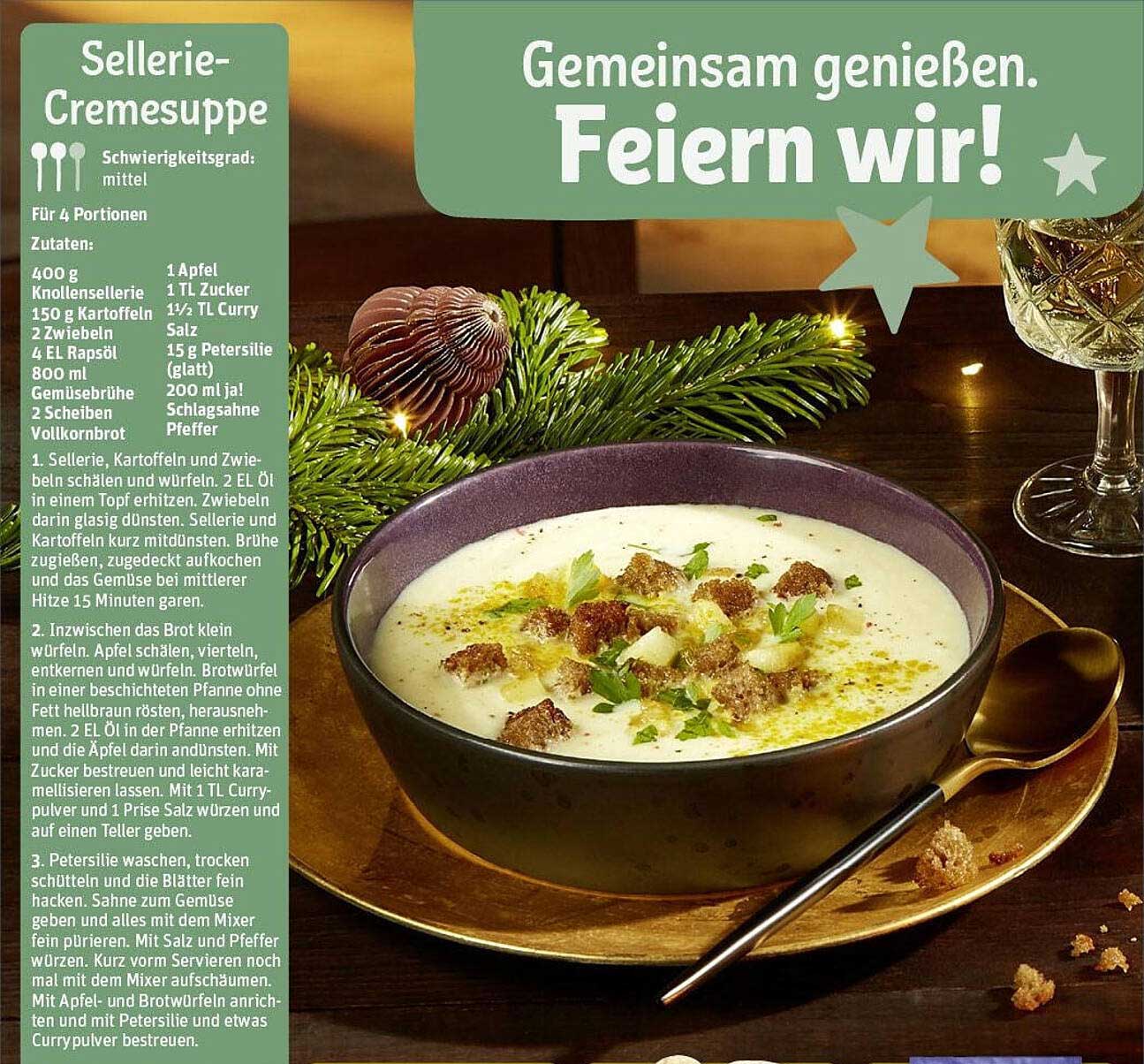Sehen Sie sich jetzt das Sellerie-Cremesuppe Angebot im REWE Prospekt an. Dieses Angebot ist gültig von 09.12.2024 bis 14.12.2024.