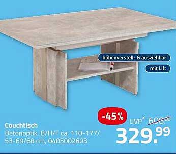 Sehen Sie sich jetzt das Couch-Tisch in Betonoptik – Höhe verstellbar & ausziehbar mit Lift Angebot im ROLLER Prospekt an. Dieses Angebot ist gültig von 28.09.2025 bis 04.10.2025.