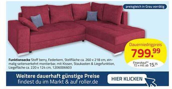 Sehen Sie sich jetzt das Funktionssofa in edlem Berry-Design Angebot im ROLLER Prospekt an. Dieses Angebot ist gültig von 29.06.2025 bis 05.07.2025.