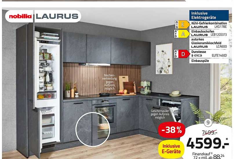 Der reguläre Preis für diese Küchenzeile beträgt 7.499,00 €, jedoch ist sie aktuell für nur 4.599,00 € zu haben! Das bedeutet eine Ersparnis von satten 38%. Dies ist eine einmalige Gelegenheit, eine hochwertige Küche zu einem unschlagbaren Preis zu ergattern. Nutzen Sie diesen Rabatt und gönnen Sie sich Ihre Traumküche.