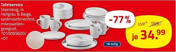 Im Roller-Prospekt genießen Sie einen unglaublichen Rabatt von 77% auf dieses Tafelservice. Der reguläre Preis beträgt 159,00 €, doch jetzt erhalten Sie es für nur 34,99 €. Das ist eine Ersparnis von über 120 €, die Ihnen die Möglichkeit gibt, stilvolles Geschirr zu einem erschwinglichen Preis zu erwerben. Solch ein starkes Angebot sollten Sie sich nicht entgehen lassen!
