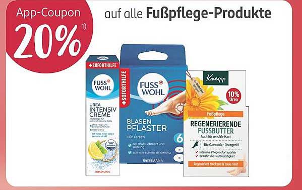 Sehen Sie sich jetzt das 20% Rabatt auf alle Fußpflege-Produkte bei Rossmann Angebot im Rossmann Prospekt an. Dieses Angebot ist gültig von 28.04.2025 bis 02.05.2025.