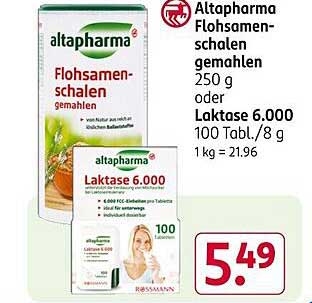 Altapharma Flohsamenschalen Gemahlen Altapharma Laktase 6.000 Angebot bei Rossmann