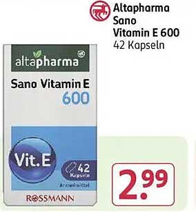 Sehen Sie sich jetzt das Altapharma Sano Vitamin E 600 - 42 Kapseln Angebot im Rossmann Prospekt an. Dieses Angebot ist gültig von 14.04.2025 bis 17.04.2025.