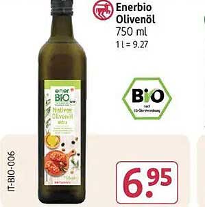 Aktuell erhalten Sie das Enerbio Olivenöl für nur 6,95 €. Im Vergleich zum regulären Preis, der normalerweise bei 7,49 € liegt, sparen Sie hier gleich 0,54 €. Ein echtes Schnäppchen für alle, die Wert auf Qualität und eine gesunde Ernährung legen!