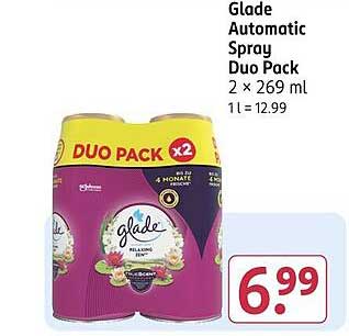 Sehen Sie sich jetzt das Glade Automatic Spray Duo Pack 2 x 269 ml Angebot im Rossmann Prospekt an. Dieses Angebot ist gültig von 02.06.2025 bis 06.06.2025.