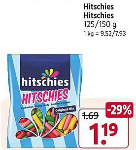 Aktuell bekommst du die Hitschies Hitschies im Angebot für nur 1,19 €. Im Vergleich zum Normalpreis von 1,69 € sparst du somit 29%! Das macht dieses Angebot besonders attraktiv für alle Süßigkeitenliebhaber. Hol dir den fruchtigen Genuss zu einem sensationellen Preis und gönn dir oder deinen Liebsten etwas Besonderes.