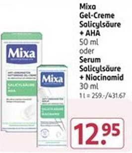 Sehen Sie sich jetzt das Mixa Gel-Creme Salicylsäure + AHA 50 ml oder Serum Salicylsäure + Niacinamid 30 ml Angebot im Rossmann Prospekt an. Dieses Angebot ist gültig von 30.06.2025 bis 04.07.2025.