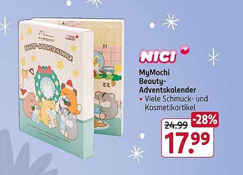 Normalerweise kostet der MyMochi Beauty-Adventskalender 24,99 €, doch aktuell erhältst du ihn für nur 17,99 €. Das bedeutet eine Ersparnis von 28%! Solch ein tolles Angebot sollte man sich nicht entgehen lassen, denn du erhältst nicht nur einen Kalender, sondern eine ganze Sammlung an wertvollen Beauty-Produkten zu einem unschlagbaren Preis.