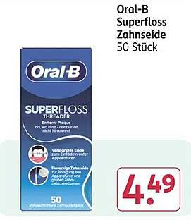 Sehen Sie sich jetzt das Oral-B Superfloss Zahnseide 50 Stück Angebot im Rossmann Prospekt an. Dieses Angebot ist gültig von 05.05.2025 bis 09.05.2025.