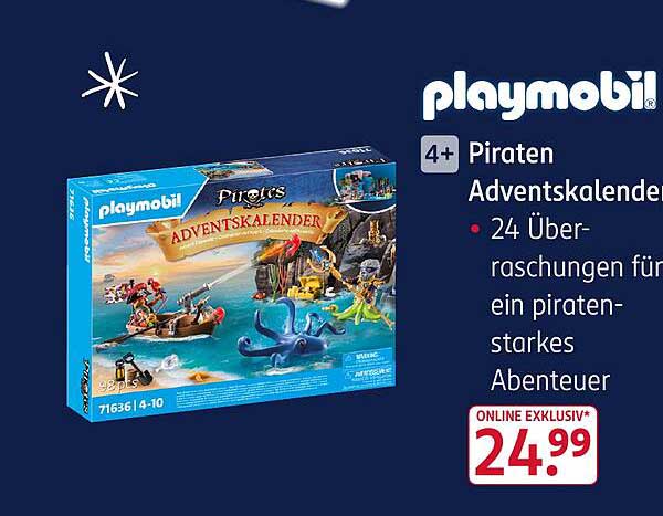 Sehen Sie sich jetzt das PLAYMOBIL Piraten Adventskalender Angebot im Rossmann Prospekt an. Dieses Angebot ist gültig von 03.10.2025 bis 05.10.2025.