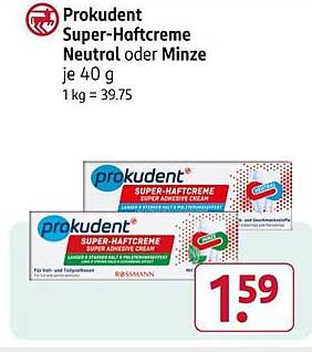 Sehen Sie sich jetzt das Prokudent Super-Haftcreme Neutral oder Minze je 40 g Angebot im Rossmann Prospekt an. Dieses Angebot ist gültig von 01.09.2025 bis 05.09.2025.